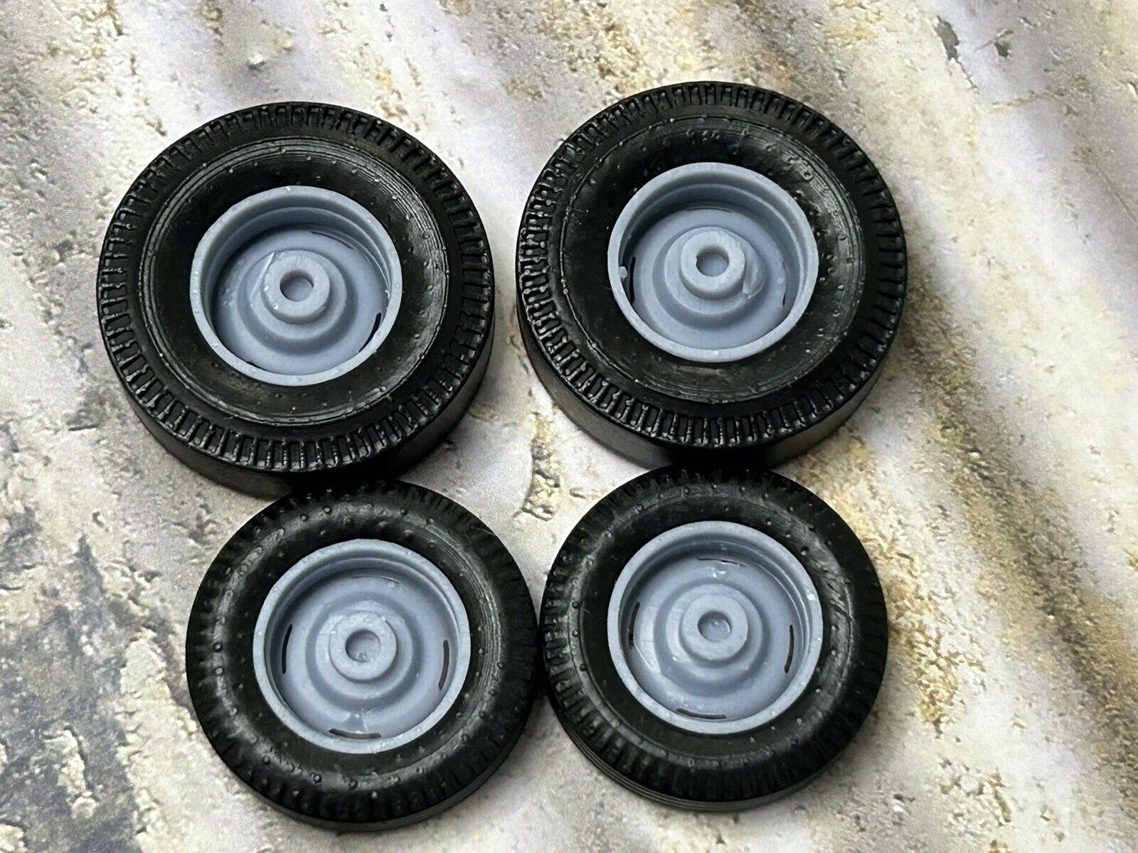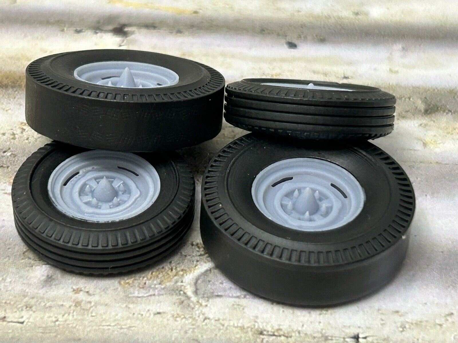 ***All items in the wheel kit come UNPAINTED. This means they are gray resin. Spray paint the tires flat black for a realistic look.