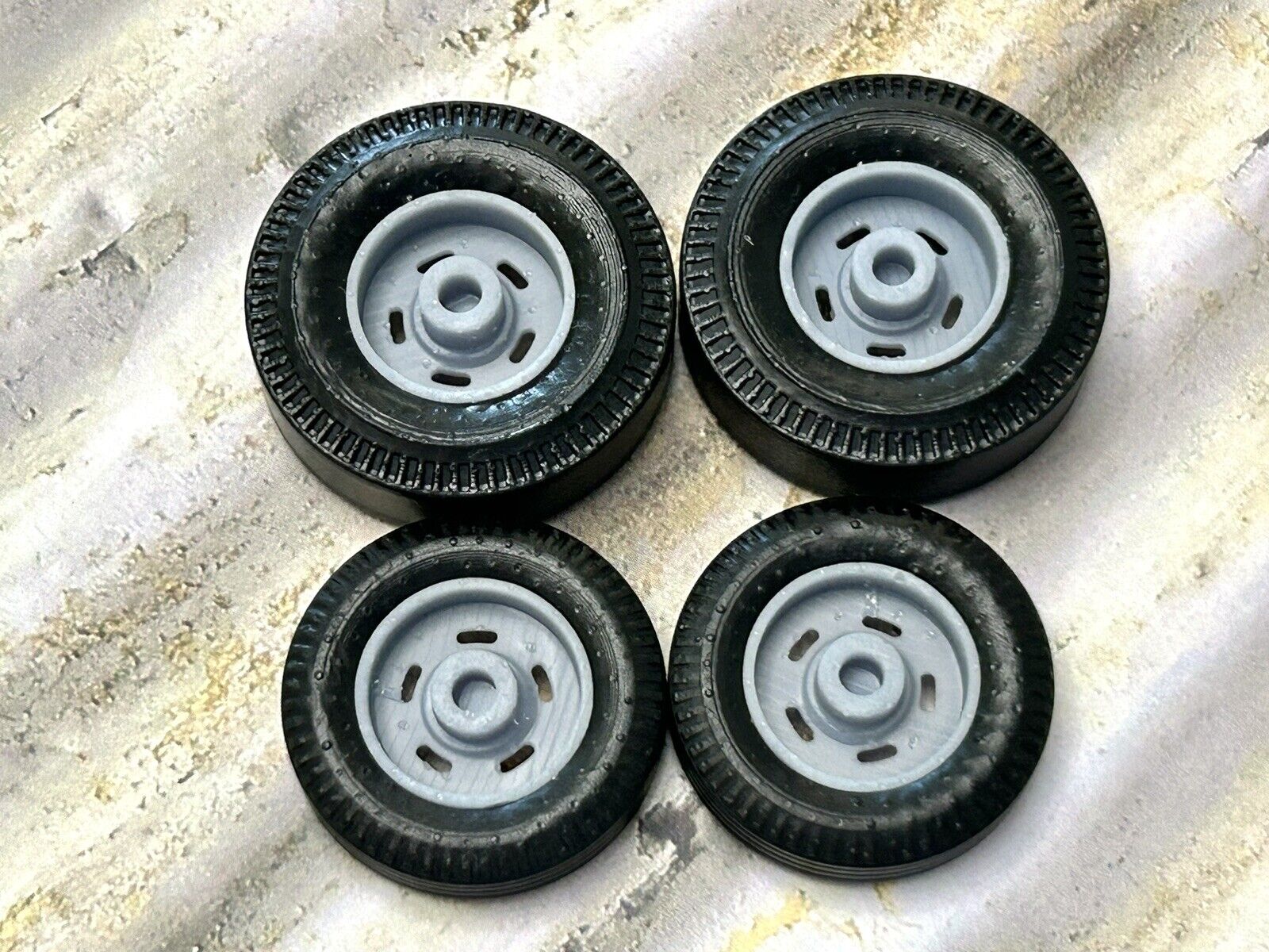 ***All items in the wheel kit come UNPAINTED. This means they are gray resin. Spray paint the tires flat black for a realistic look.